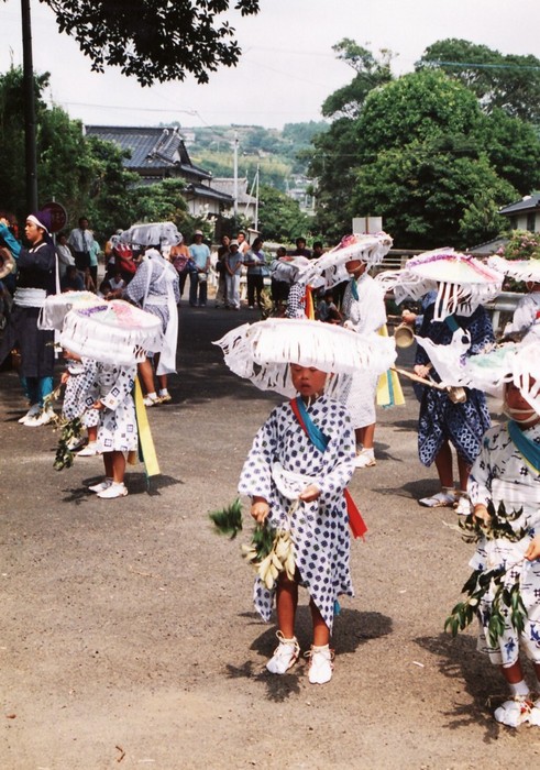 この踊りは「種子島楽」ともいい,出水地方に昔から伝えられた郷土芸能の一つです。由来は,約450年前島津氏が種子島を攻めたとき,土地に伝わる踊りを見て,それを薩摩に伝えたといわれています。旧薩摩藩の各地で踊られていた念仏系の踊りで,現在種子島に残っているものと類似しており,相互関連があるものとみられています。
