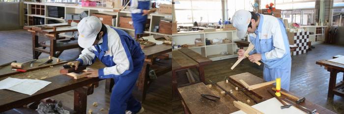 技能に関する意欲を高め訓練の更なる充実を図ることを目的として,職業能力開発促進月間に併せて,11月14日(水曜日)は室内造形科の1年生・2年生,11月15日(木曜日)は建築工学科の1年生・2年生が校内技能競技大会を行いました!室内造形科の1年生は2時間30分,2年生は5時間以内に課題を作り上げます。建築工学科は4時間30分以内に木取り図に従って墨付け,加工及び組立てを行います。