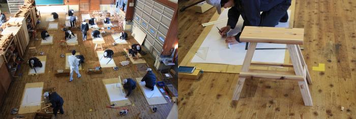 2年生は「基礎小屋模型」が完成しました。また、修了を間近に控え、技能水準を測るための技能照査が実施されました。合格した者には技能士補が与えられます。