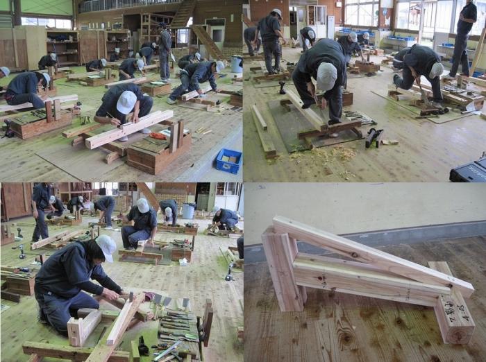 今年度最後の訓練の様子です。県予選を終えた1年生は「谷隅木模型」を制作しました。この1年間で手工具の扱いにも慣れ、たくましく成長しました。4月から後輩の良き手本となってくれることでしょう。