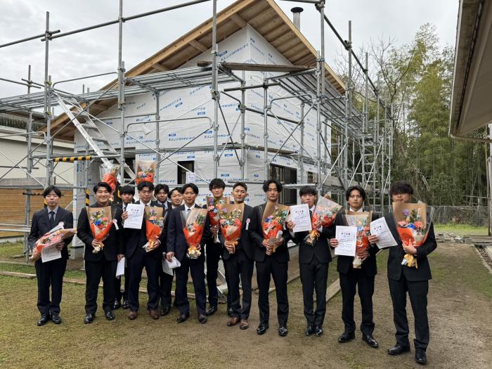 上棟式体験 茶室(建工庵)を備えた数寄屋風家屋を製作する過程で宮之城聖母幼稚園生に上棟式を体験してもらいました。 |
