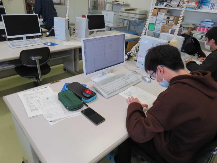 メカトロニクス科で校内技能競技大会を行いました。競技種目は1年生が旋盤作業,2年生が製図作業でした。学生の家族も見学に訪れ,学生の様子をみたり,本校の雰囲気を感じてもらったりしました。学生は家族の視線があるのでいつも以上に気合いが入って,課題作成に一生懸命取り組んでいるようでした。