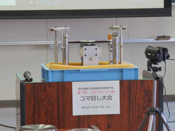 平成26年度から始まり今年で7回目となる「コマ回し大会」が行われました。この大会はメカトロニクス科1・2年生が金属でつくるコマのアイデアや技術・技能を競うものです。独自のコマはCADを使って設計後,1年生は汎用旋盤,2年生はCNC旋盤で製作しました。どれだけ回転するか競う継続部門,デザインの善し悪しを競う造形部門,土俵でぶつかり合って止まるまで競う喧嘩ゴマ部門でそれぞれ競い合いました。結果は2年生が継続部門,喧嘩ゴマ部門で優勝,造形部門は1年生・2年生がそれぞれ表彰されました。みんなが熱く盛り上がった大会となりました。今後も腕をさらに磨いていくことでしょう。