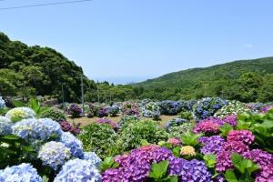 1,500株のアジサイと阿久根大島を遥かに望む絶景の名所です。