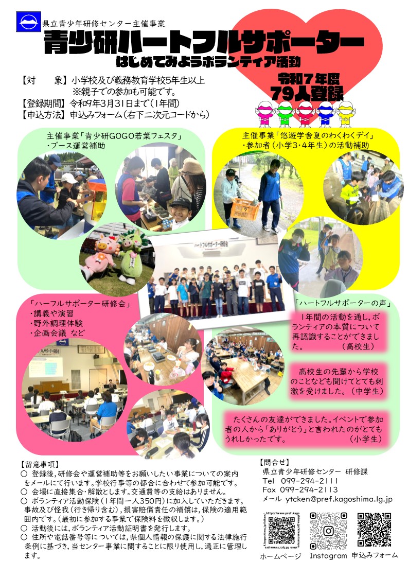 青少研ハートフルサポーター募集について