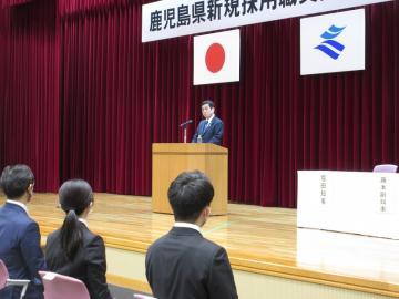 令和5年度鹿児島県新規採用職員辞令交付式において、新規採用職員の皆さんにお話をしました。