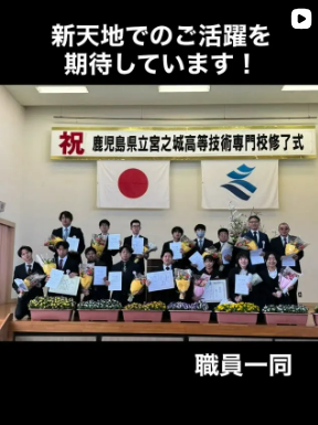 ホーム > 産業・労働 > 雇用・労働 > 職業能力開発 > 宮之城高等技術専門校 > 専門校ニュース > 最新のニュース&トピックス(公式SNSで最新情報を動画配信中!インスタフォロワー8000名突破!ぜひご覧ください!)