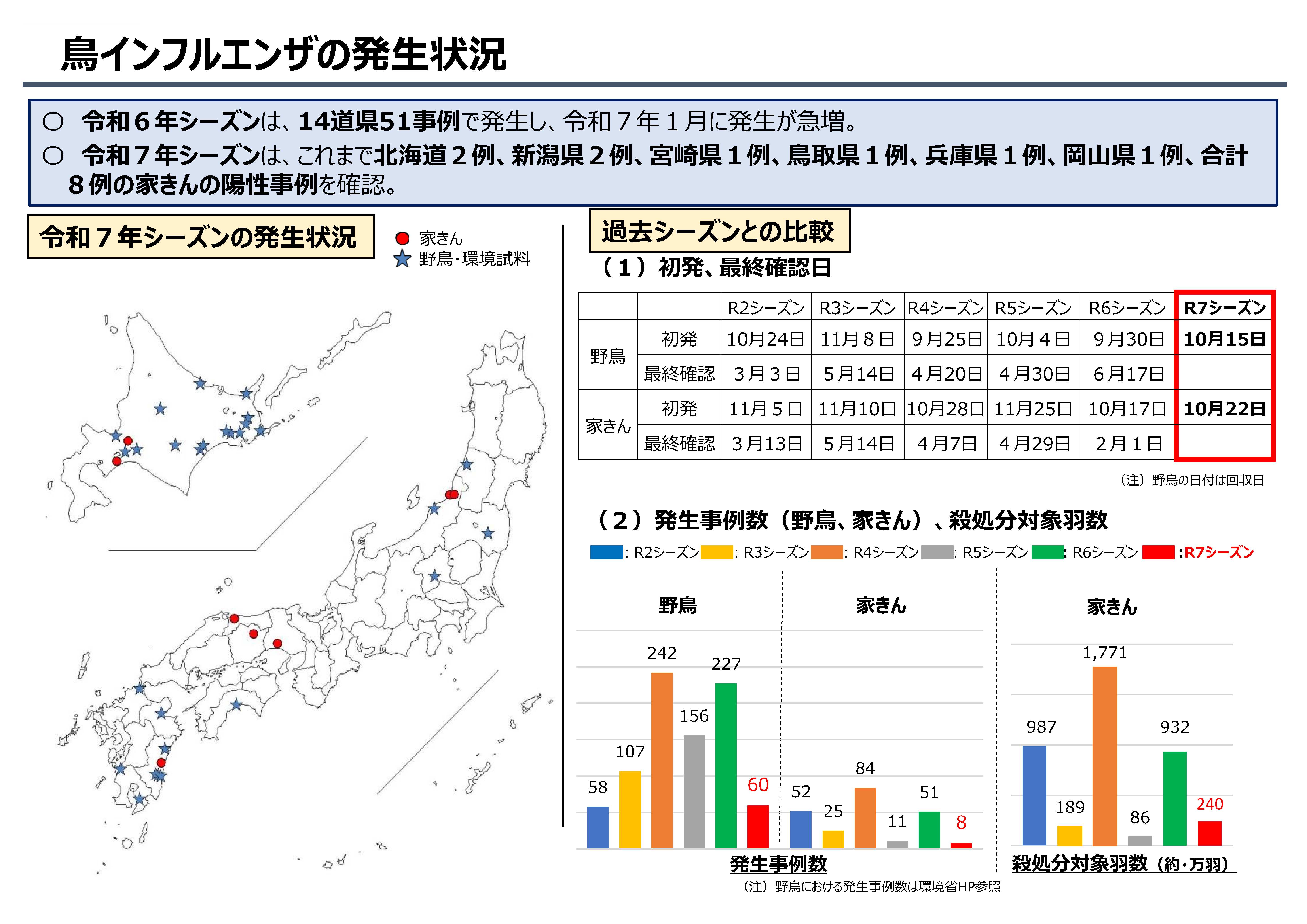 令和7年度国内における高病原性及び低病原性鳥インフルエンザ発生状況(R7.12.22現在)(PDF:239KB)