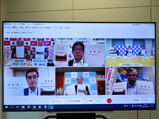 令和3年7月19日(月曜日),南九州西回り自動車道建設促進協議会,南九州西回り自動車道建設促進期成会,鹿児島県議会南九州西回り自動車道建設促進議員連盟,熊本県議会県南振興議員連盟の4団体合同で,小里泰弘衆議院議員,金子恭之衆議院議員,馬場成志参議院議員出席の下,財務省・国土交通省へ要望活動を行いました。なお,今年度は新型コロナウイルスの感染状況を踏まえ,オンライン面会方式にて要望活動を実施しました。