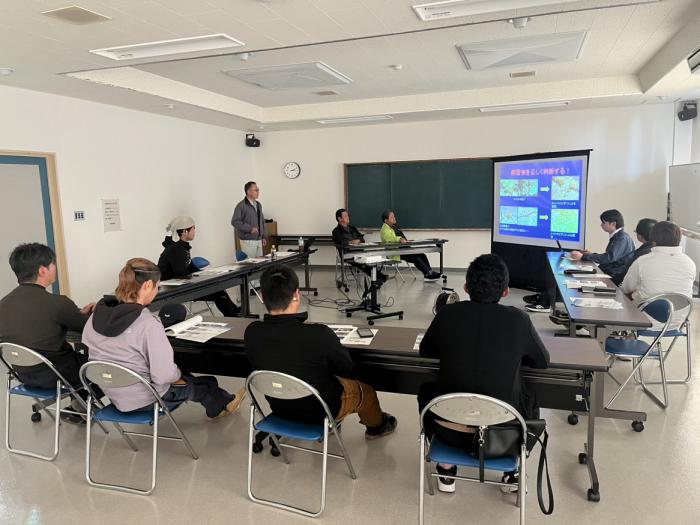 12月1日,北薩地域振興局出水庁舎で水稲の現地就農トレーナー研修を開催し,新規就農者,指導農業士,関係機関12人が出席しました。研修では,農政普及課から「水稲奨励品種の特徴と使い分け」,指導農業士の澤田泰之氏から「農家の90%が知らない農産物のブランディングとマーケティング」,出水市から「経営所得安定対策」について説明しました。新規就農者の質問や相談に対し,発表者が回答や助言をするなど活発な意見交換が行われました。今後も,指導農業士,関係機関・団体と連携し,新規就農者の育成に取り組みます。