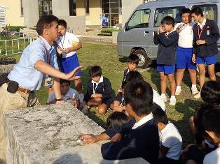 | 自然紹介授業は,会場に来られない学校を対象に,博物館職員が出かけていって授業をする講座です。昆虫は沖永良部島に進入するかもしれない昆虫を紹介し,注意を促しました。 | 地質の自然紹介授業では,学校で見られる琉球石灰岩の歴史について講話をしたり,実際にハンマーで割って断面を見たりと,実物を用いた授業を行いました。 | |||||||||