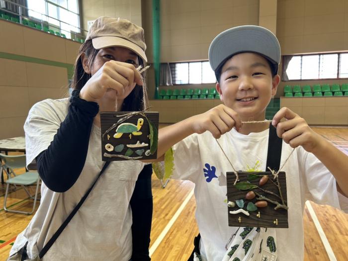 県立奄美少年自然の家では,令和5年11月3日(金曜日)に「自然の家がやってきたin宇検村」を開催しました。秋晴れの中,親子で一緒に創作活動やふれあい体験活動を楽しんでいただきました。